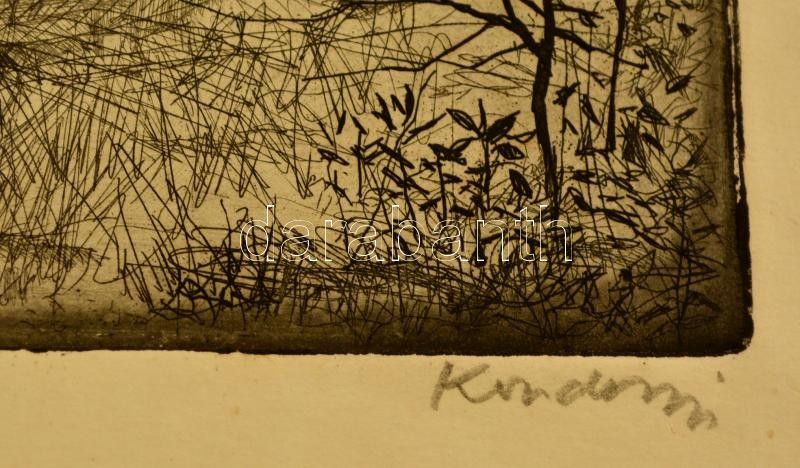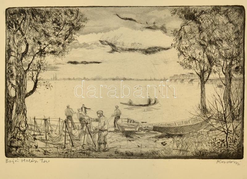 Beschreibung: Kondor Lajos (1926-2006): Bajai Halász TSz. Rézkarc, papír, jelzett, 19×29 cm