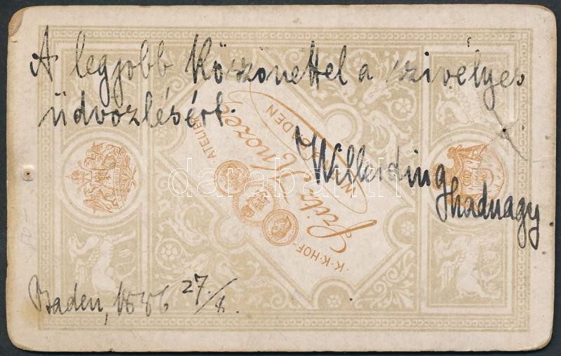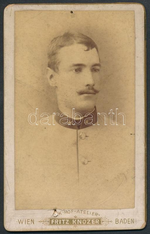 1886 Willerding Rezső (1866-1928) hadnagy, később vezérőrnagy, majd a Nemzeti Hadsereg parancsnokának portréja, keményhátú fotó Fritz Knozer badeni műterméből, hátulján Willerding dedikációjával, 10,5×6,5 cm
