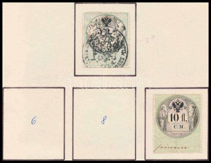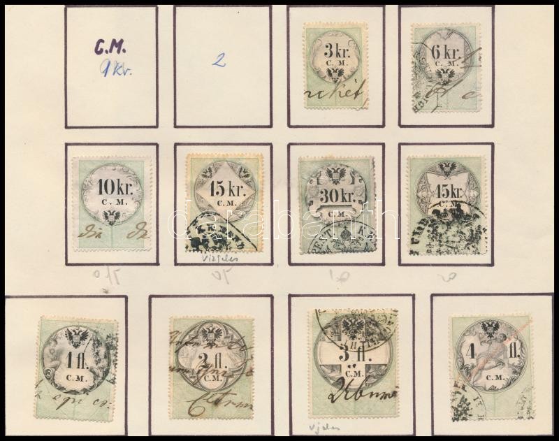 Beschreibung: Ausztria 1854 12 db okmánybélyeg, közte 2 vízjeles, albumlapon