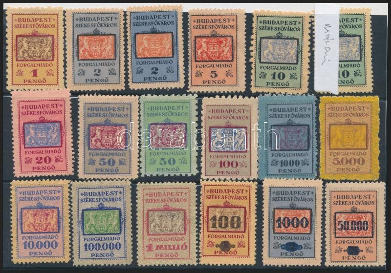Beschreibung: Budapest Székesfőváros 18 db Forgalmiadó bélyeg