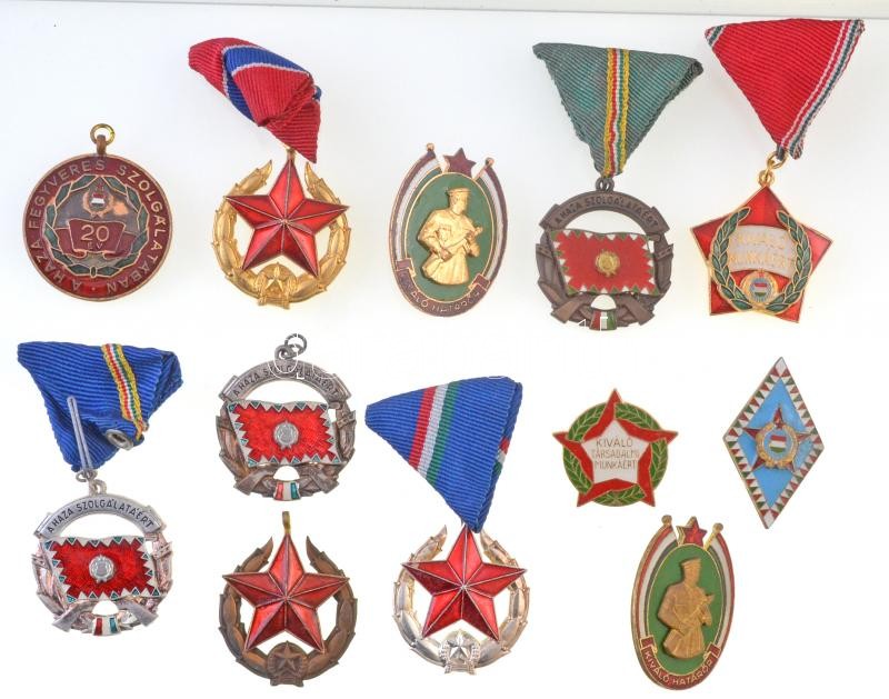 12db-os vegyes jelvény és kitüntetés tétel a szocialista korszakból, közte "Kiváló Határőr" jelvény (2x), "A haza szolgálatáért" kitüntetés (3x) T:2,2-