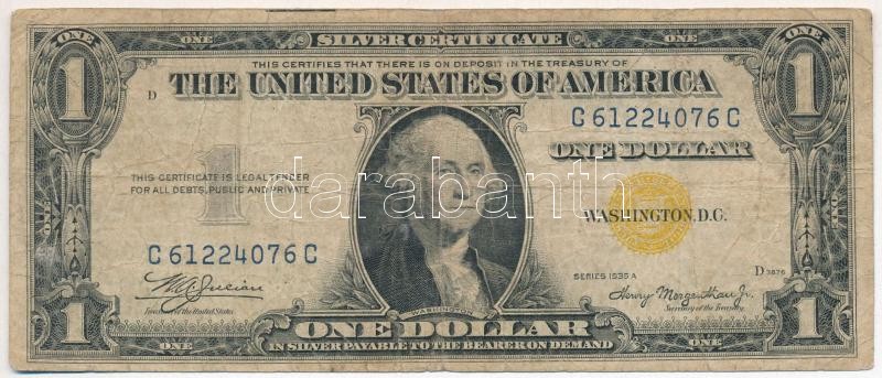 Amerikai Egyesült Államok 1934-1945. (1935A) 1$ "Silver Certificate - kisméretű" sárga pecsét, "William Alexander Julian - Henry Morgenthau Jr." T:III