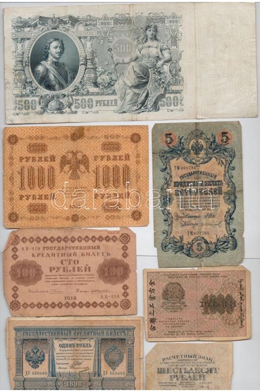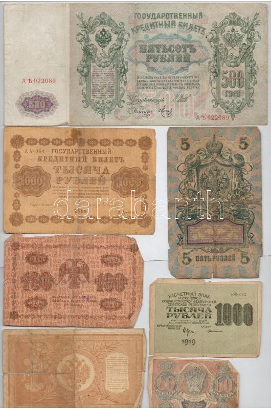 Orosz Birodalom / Szocialista Szövetségi Szovjet Köztársaság vegyes 8db-os bankjegy tétel 1-1000R közötti névértékek T:III,III-