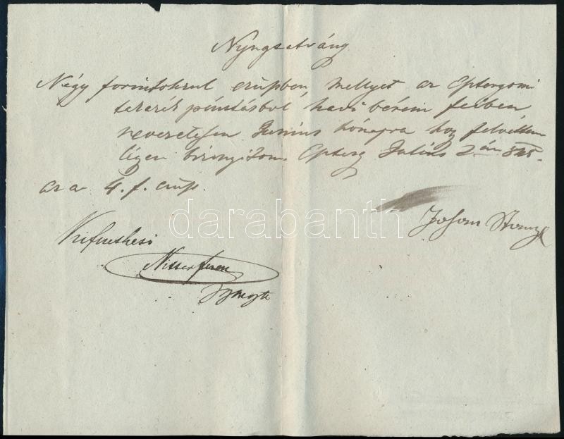 Beschreibung: 1845 Esztergom, Nyugta 4 db ezüst forintról
