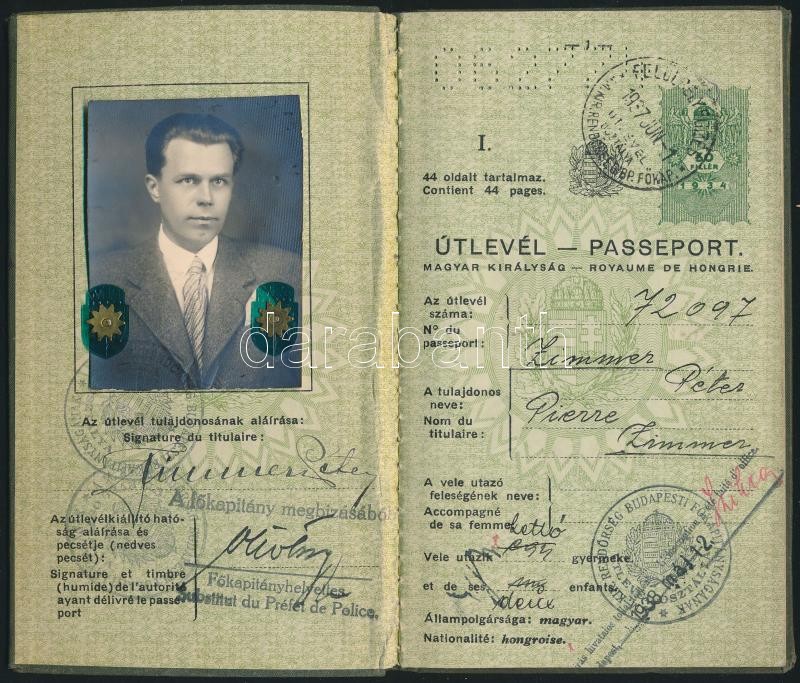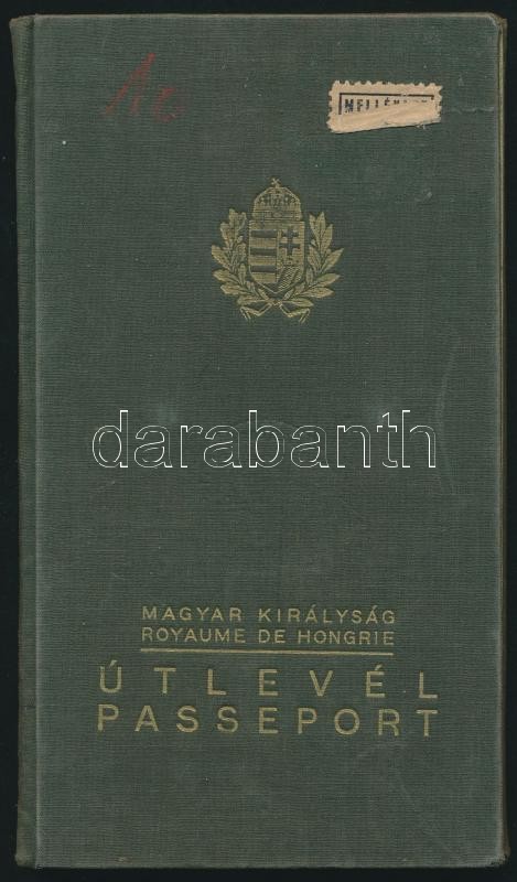 1937-1940 Bp., A Magyar Királyság által kiállÃtott fényképes útlevél, ... https://www.darabanth.com/de/294-Fernauktion/294.0/Andere-Sammelgebiete/Dokument~200016/1937-1940-Bp-A-Magyar-Kiralysag-altal-kiallitott-fenykepes-utlevel-vizmuvek-fomerno~II1558634