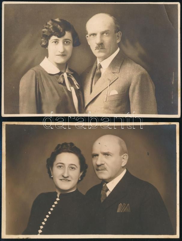 1928-1941 Tizenhárom év múlva, házaspár fotója tizenhárom évi különbséggel, fotólapok, Pécs Erzsébet műtererme, Sátoraljaújhely Foto Kottner, a hátoldalon feliratozva, 8,5x13 cm.