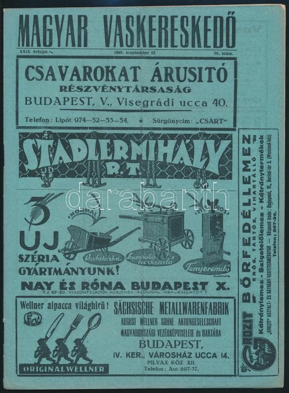 Beschreibung: 1929 a Magyar Vaskereskedő 29. évf. 38. lapszáma számos érdekes írással