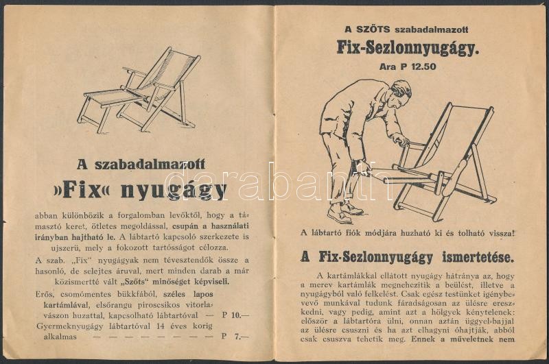 cca 1930 A Szőts-féle FIX nyugágy és kerti bútor árjegyzéke, képekkel ... https://www.darabanth.com/de/294-Fernauktion/294.0/Andere-Sammelgebiete/Drucksachen~200027/cca-1930-A-Szots-fele-FIX-nyugagy-es-kerti-butor-arjegyzeke-kepekkel-illusztralt~II1561480