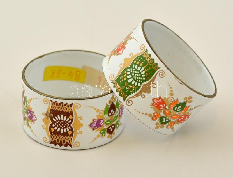 Beschreibung: 2 db Steinböck osztrák tűzzománcozott szalvétagyűrű, jelzettek, az egyik számozott, kopásnyomokkal, d: 4 cm