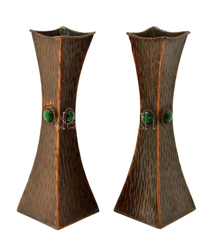 Beschreibung: 2 db Vörösréz váza, kövekkel díszített, m: 18 cm