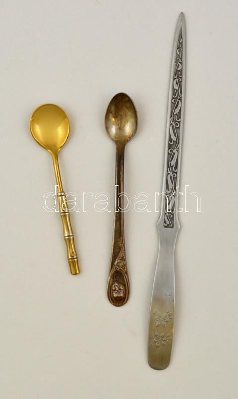 Díszes fém papírvágó kés + 2 db díszes fém kiskanál, h: 11,5, 14 és 23... https://www.darabanth.com/de/294-Fernauktion/294.0/Andere-Sammelgebiete/Flohmarkt~200011/Diszes-fem-papirvago-kes-plus-2-db-diszes-fem-kiskanal-h-11-5-14-es-23-cm~II1558282