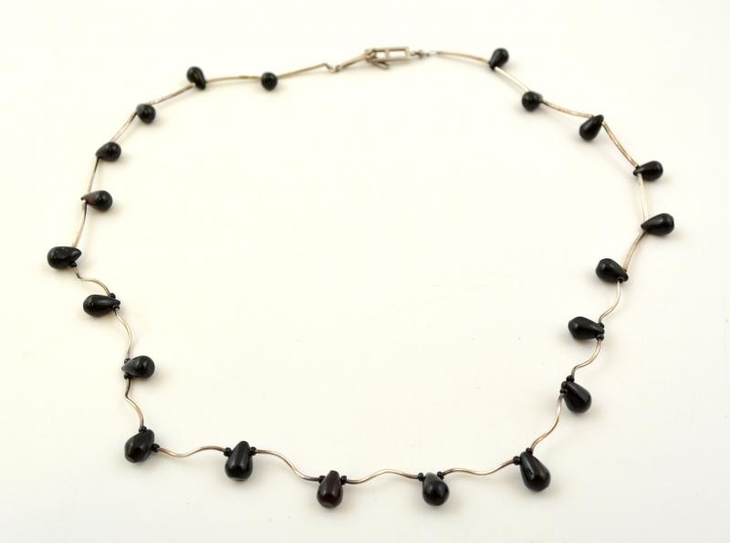 Fekete kővel díszített ezüstözött nyaklánc, h: 59 cm https://www.darabanth.com/de/294-Fernauktion/294.0/Andere-Sammelgebiete/Flohmarkt~200011/Fekete-kovel-diszitett-ezustozott-nyaklanc-h-59-cm~II1563201