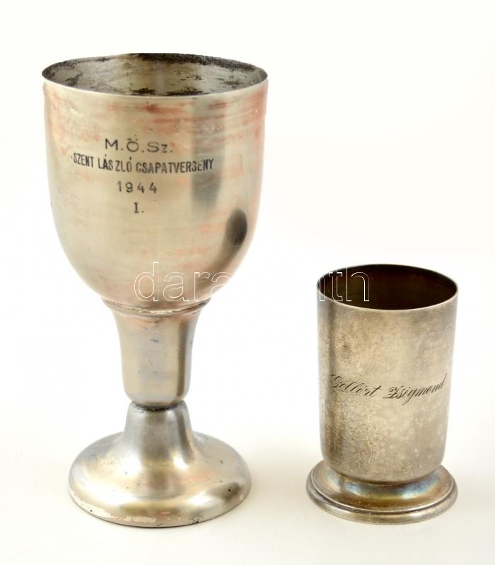 Beschreibung: "Gellért Zsigmond" feliratú alpakka pohár, d: 5,5 cm + "MÖSZ Szent László Csapatversen 1944 I." feliratú fém kupa, d: 8,5 cm