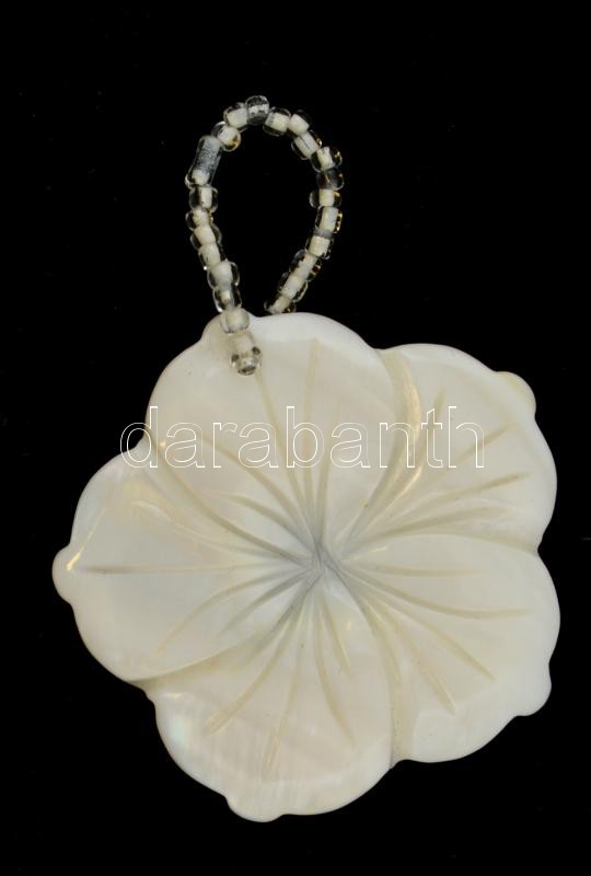 Beschreibung: Hibiszkusz formájú gyöngyházfényű medál, 4×4 cm