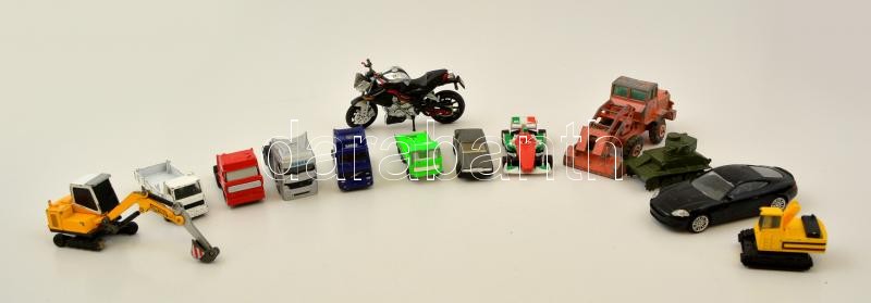 Beschreibung: Kis játék tétel: autók, motorok, közte Matchbox is, némelyik kis hiánnyal, összesen 13 db