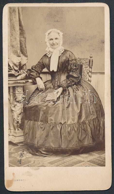 Beschreibung: cca 1860 Miáilovitsné feliratozott, vizitkártya méretű fényképe, Simonyi pesti fényirdájából, 10,5x6 cm