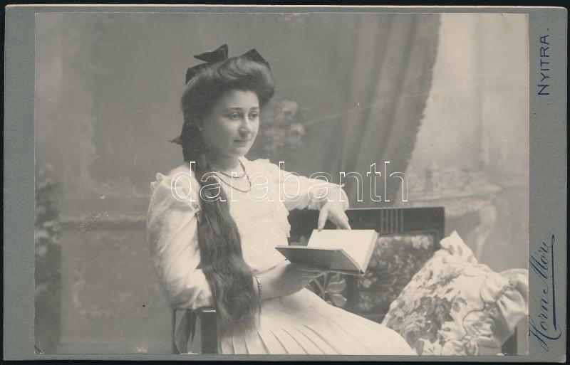 cca 1910 Olvasó hölgy, keményhátú fotó Horn Mór nyitrai műterméből, 10... https://www.darabanth.com/de/294-Fernauktion/294.0/Andere-Sammelgebiete/Foto~200019/cca-1910-Olvaso-holgy-kemenyhatu-foto-Horn-Mor-nyitrai-mutermebol-10-5C39716-5-cm~II1557572