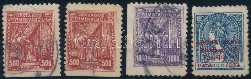 Beschreibung: Gyermekvédő liga 3 db bélyeg + Abonyi Jenő reklámbélyeg