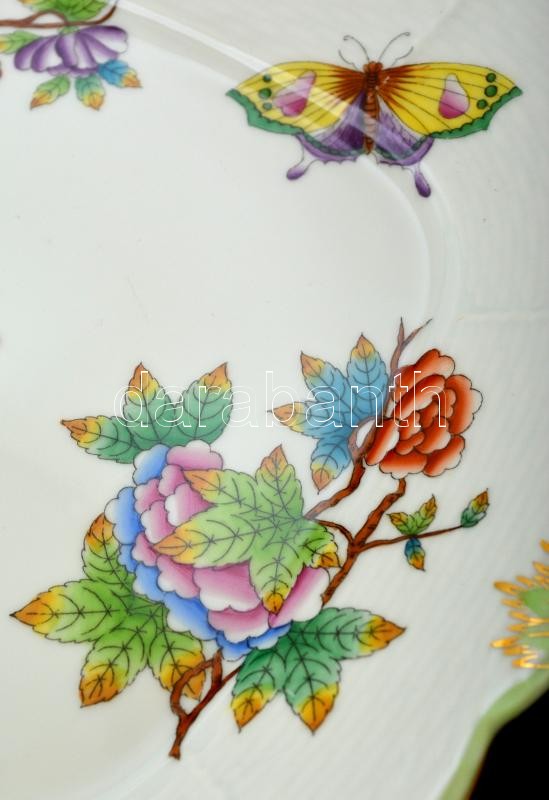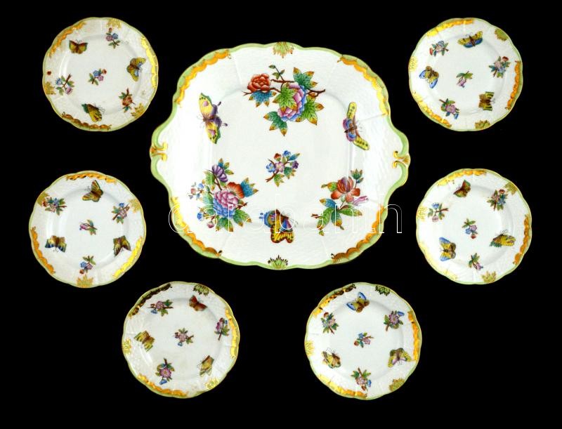 Beschreibung: Herendi Viktória mintás apró süteményes készlet, kézzel festett, jelzett, hibátlan, d: 12,5 cm (6×), d:27 cm