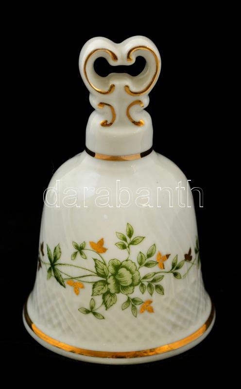 Beschreibung: Hollóházi porcelán csengő, virágokkal díszített, szolidan aranyozott, jelzett, m: 10,5 cm