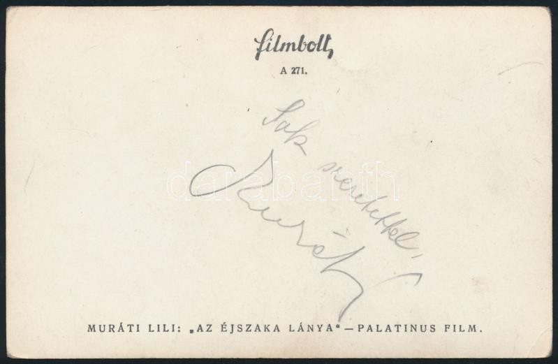 Muráti Lili (1912-2003) színésznő aláírása az őt ábrázoló fotólap háto... https://www.darabanth.com/de/294-Fernauktion/294.0/Andere-Sammelgebiete/Signatur~200018/Murati-Lili-1912-2003-szineszno-alairasa-az-ot-abrazolo-fotolap-hatoldalan~II1558955