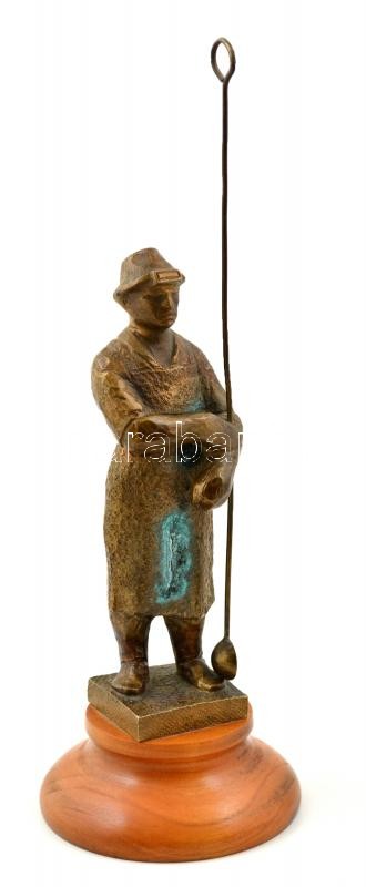 Beschreibung: Jelzés nélkül: Vasöntő. Bronz, kis repedéssel, fa talapzaton, m: 16 cm (23 cm)