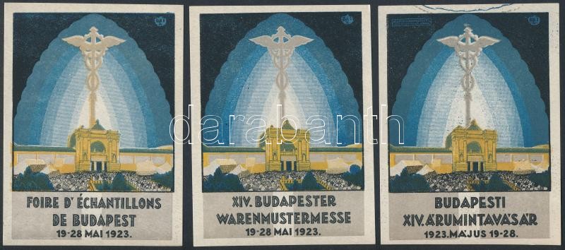 Beschreibung: 1922-1923 Faragó Géza és Baja Béla által tervezett reklám nyomtatványok, Budapesti Árumintavásár, 5 db, 12x9 cm