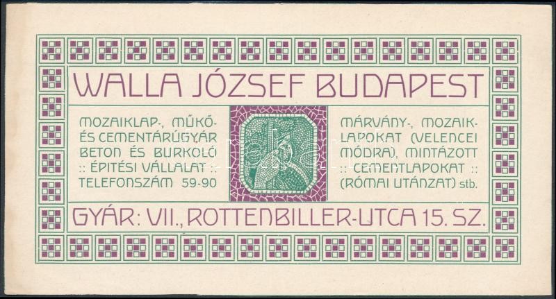 Beschreibung: cca 1920 Budapest, Walla József mozaiklap- műkő- és cementárugyár reklámlapja, 10x19 cm