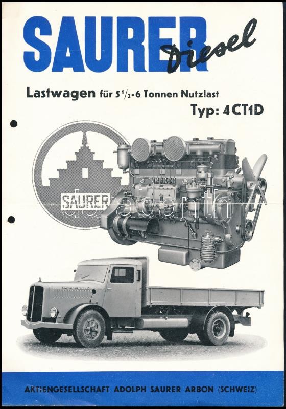 cca 1950 Saurer Typ 4CT1D teherautó reklám prospektusa, műszaki adatok... https://www.darabanth.com/de/294-Fernauktion/294.0/Andere-Sammelgebiete/Werbungen~200020/cca-1950-Saurer-Typ-4CT1D-teherauto-reklam-prospektusa-muszaki-adatokkal-30x21-cm-Saurer-Swis~II1561826