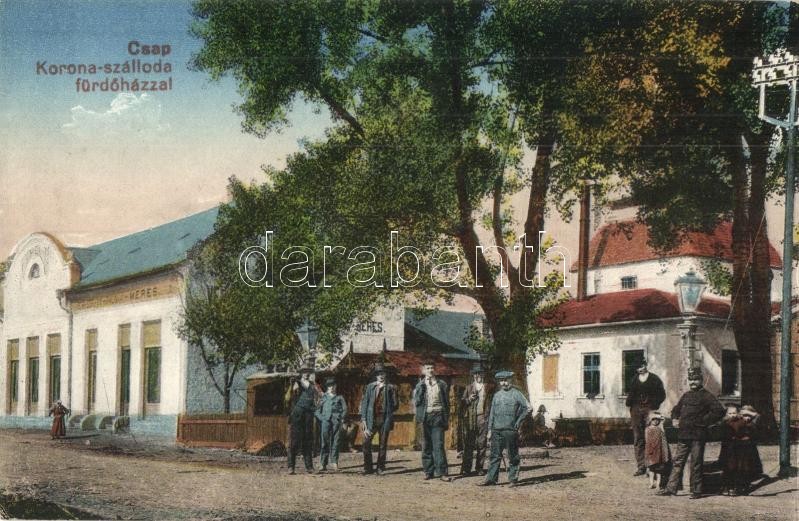 Csap, Chop; Korona szálloda és fürdőház / hotel and spa https://www.darabanth.com/de/294-Fernauktion/294.0/Ansichtskarten/Karpatenukraine~100008/Csap-Chop-Korona-szalloda-es-furdohaz-hotel-and-spa~II1561740