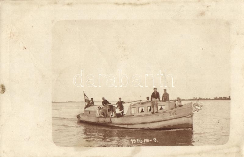 1916 232-es számú dunai motoros kishajó / Hungarian motorboat "232", p... https://www.darabanth.com/de/294-Fernauktion/294.0/Ansichtskarten/Schiffe~100058/1916-232-es-szamu-dunai-motoros-kishajo-Hungarian-motorboat-232-photo-fl~II1562753