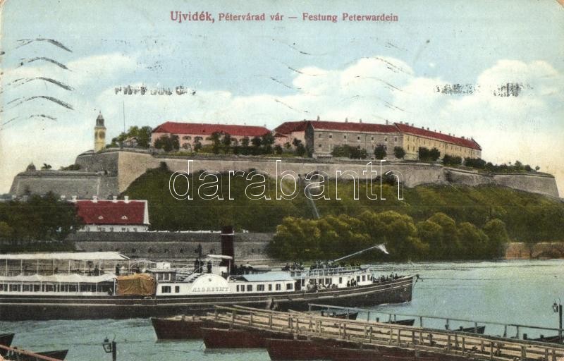 Albrecht gőzüzemű oldalkerekes személyhajó Újvidéken a Péterváradi vár... https://www.darabanth.com/de/294-Fernauktion/294.0/Ansichtskarten/Schiffe~100058/Albrecht-gozuzemu-oldalkerekes-szemelyhajo-Ujvideken-a-Petervaradi-varral-Hungarian-pass~II1561592