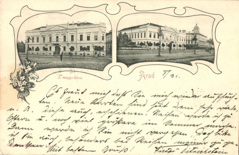 Arad, Megyeház. Kerpel Izsó / county hall, floral, Art Nouveau (EK) https://www.darabanth.com/de/294-Fernauktion/294.0/Ansichtskarten/Siebenburgen~100006/Arad-Megyehaz-Kerpel-Izso-county-hall-floral-Art-Nouveau-EK~II1561652