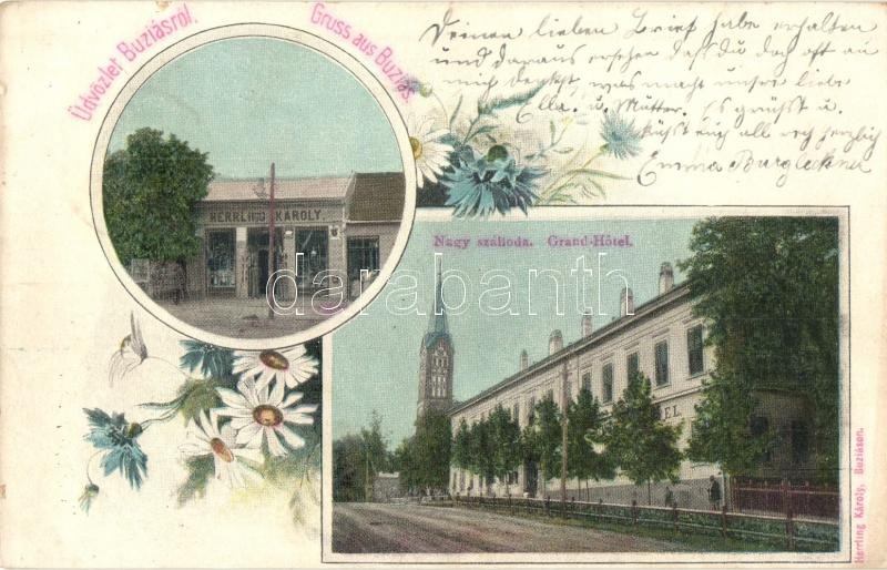 Beschreibung: Buziás, Nagyszálloda, Herrling Károly üzlete és saját kiadása / hotel, shop, floral
