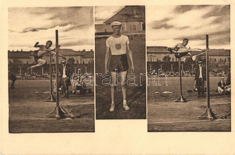 Beschreibung: 1913 Mac. verseny, Horine magasugró világrekorder; Klasszikus pillanatok vállalat, Révész és Bíró műterem / High jump athlete
