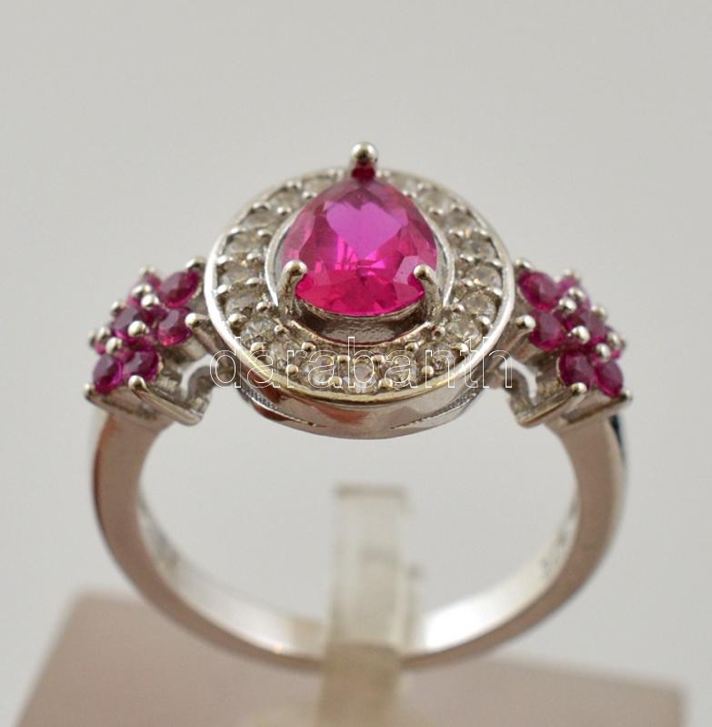 Beschreibung: Ezüst(Ag) gyűrű, szintetikus kövekkel díszítve, jelzett, méret: 54, bruttó: 4,3 g