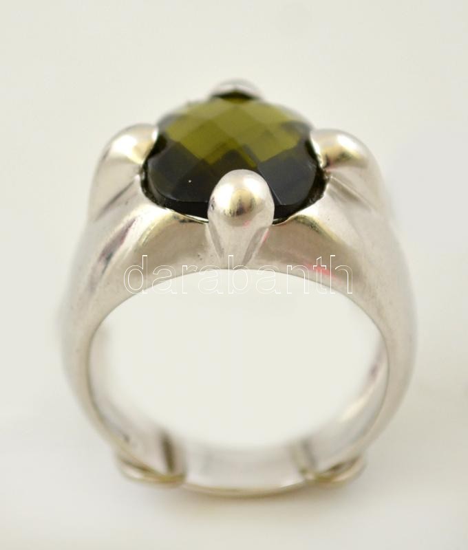 Beschreibung: Ezüst(Ag) gyűrű zöld csiszolt üveg kővel, jelzett, méret: 54, bruttó: 7,7 g