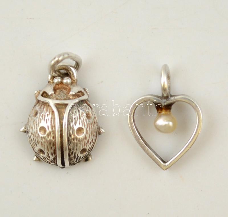 Beschreibung: Ezüst(Ag) katica és gyöngyös szív függő, jelzett, bruttó: 1,7 g