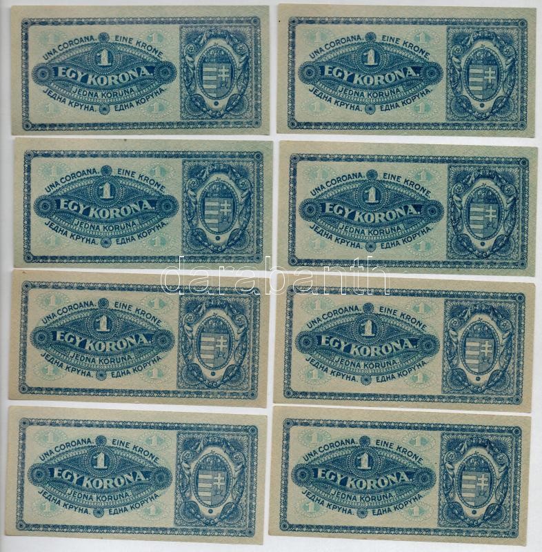 1920. 1K (8x) sorszámkövetők T:I,I- https://www.darabanth.com/de/294-Fernauktion/294.0/Numismatik/Ungarische-Banknoten~400007/1920-1K-8x-sorszamkovetok-TI-I-~II1561192