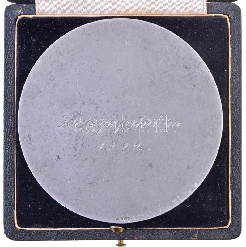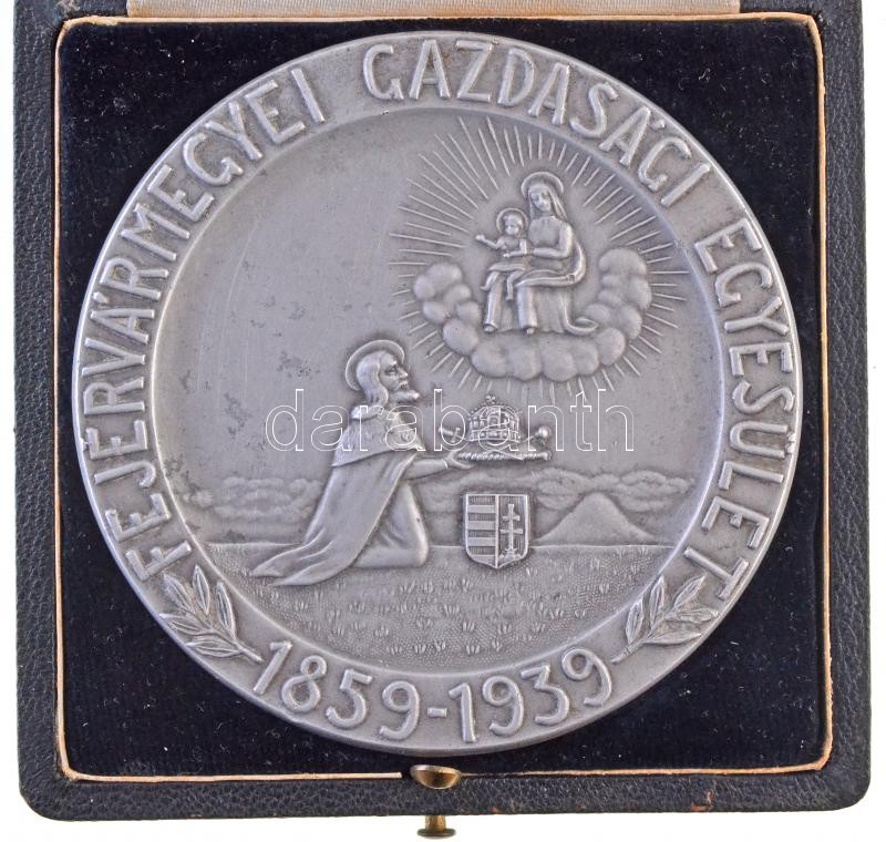 ~1940. "Fejérvár Megyei Gazdasági Egyesület 1859-1939" fém plakett, hátoldalon "LUDVIG" gyártói jelzéssel és "Vizsgajutalom 1940" véséssel, eredeti dísztokban (81mm) T:1-