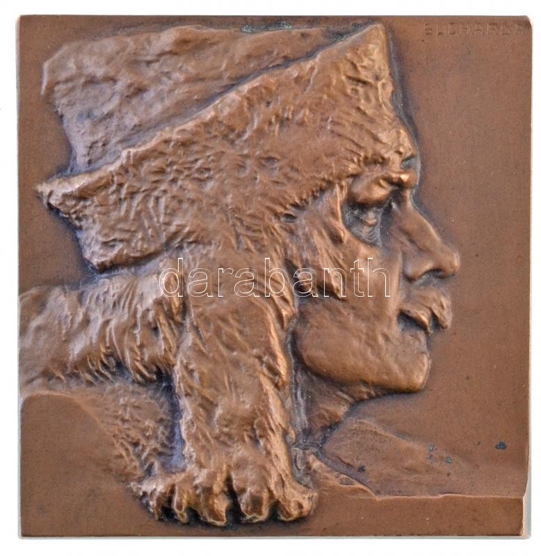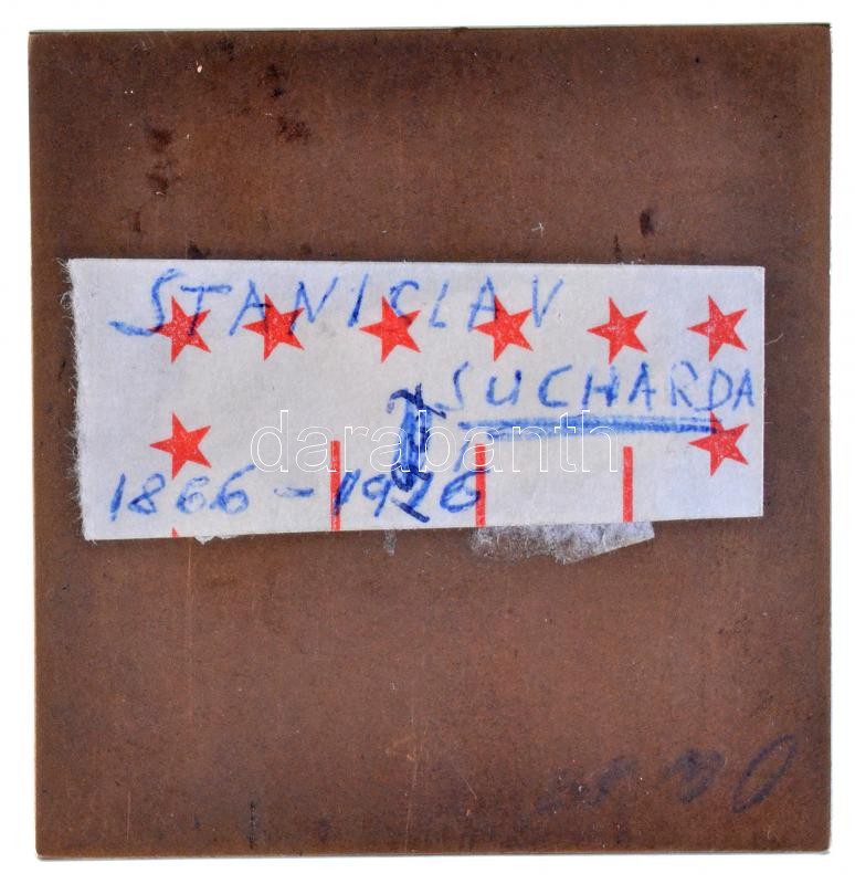Austro-Hungarian Empire / Bohemia ~1900. "Man with mustache" Br plaque. Sign.: Stanislav Sucharda (1866-1916) (53,5x55mm) C:XF with sticker on back