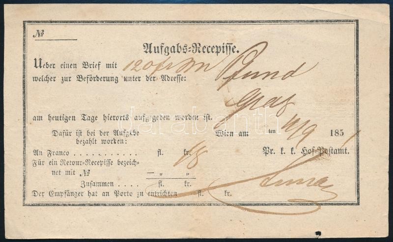 1851 Német nyelvű kitöltött feladási vevény https://www.darabanth.com/de/295-Fernauktion/295.0/Andere-Sammelgebiete/Dokument~200018/1851-Nemet-nyelvu-kitoltott-feladasi-veveny~II1567841