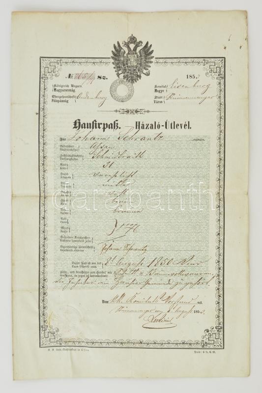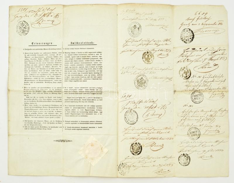 1853 Házaló útlevél sok település pecsétjével / 1853 Peddler passport https://www.darabanth.com/de/295-Fernauktion/295.0/Andere-Sammelgebiete/Dokument~200018/1853-Hazalo-utlevel-sok-telepules-pecsetjevel-1853-Peddler-passport~II1573098