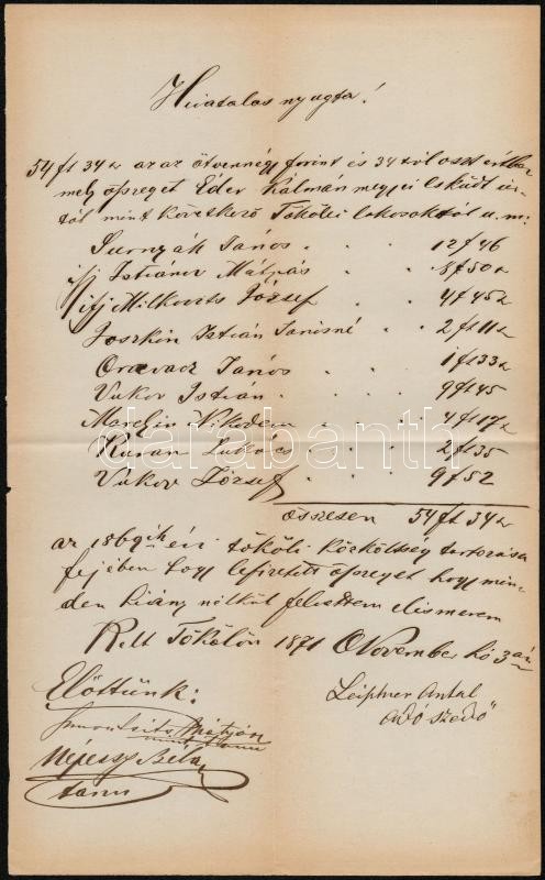 1871, Tököl, magyar nyelvű, kézzel írott nyugta https://www.darabanth.com/de/295-Fernauktion/295.0/Andere-Sammelgebiete/Dokument~200018/1871-Tokol-magyar-nyelvu-kezzel-irott-nyugta~II1568072