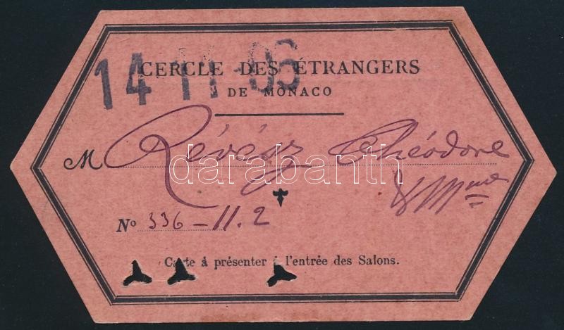 1896 Monaco, szalonbelépő, 6,5x11 cm / 1896 Monaco, entrance ticket of... https://www.darabanth.com/de/295-Fernauktion/295.0/Andere-Sammelgebiete/Dokument~200018/1896-Monaco-szalonbelepo-6-5x11-cm-1896-Monaco-entrance-ticket-of-the-Salon-6-5x11-cm~II1570128
