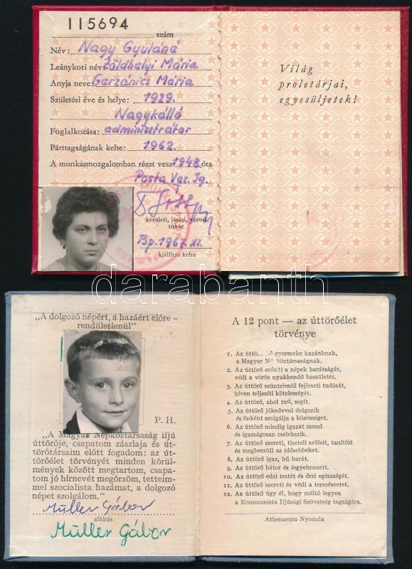 1968-1993 Vegyes okmány tétel (fényképes útlevelek, valutalap, Magyar Úttörők Szövetsége tagsági könyv, Magyar Szocialista Munkáspárt tagsági könyv), 8 db