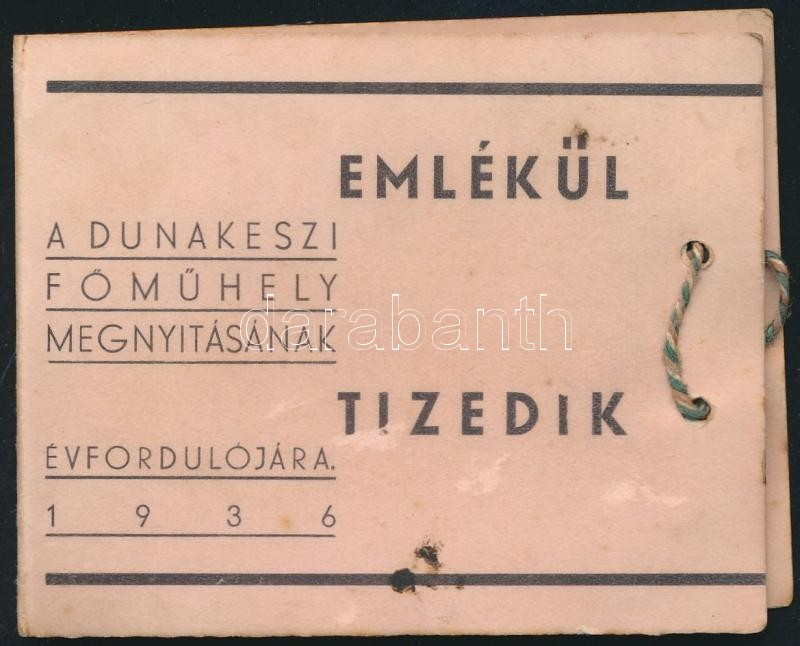 Beschreibung: 1936 Dunakeszi Főműhely megnyitásának 10. évfordulója emlékéül, leporelló füzet, 12 db képpel,