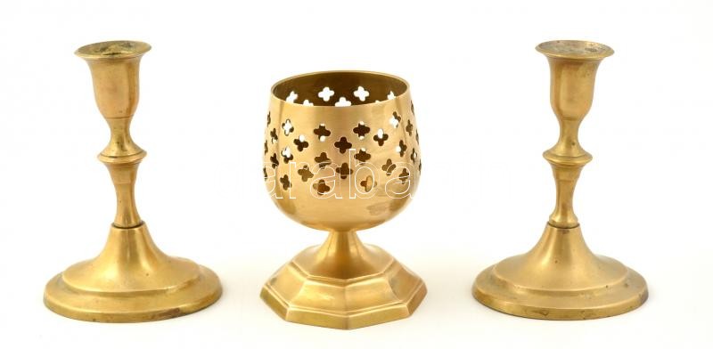 Beschreibung: 3 db réz gyertyatartó, jó állapotban, m: 11 és 12,5 cm