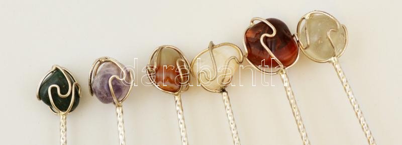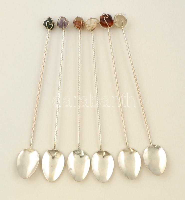 6 db féldrágakövekkel díszített koktélkanál, h: 21 cm https://www.darabanth.com/de/295-Fernauktion/295.0/Andere-Sammelgebiete/Flohmarkt~200012/6-db-feldragakovekkel-diszitett-koktelkanal-h-21-cm~II1565995