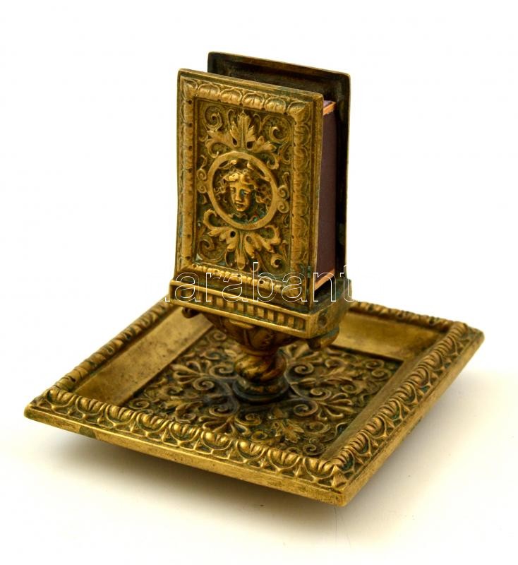 Antik gazdagon díszített réz gyufatartó, m:10,5 cm. https://www.darabanth.com/de/295-Fernauktion/295.0/Andere-Sammelgebiete/Flohmarkt~200012/Antik-gazdagon-diszitett-rez-gyufatarto--m10-5-cm~II1570369